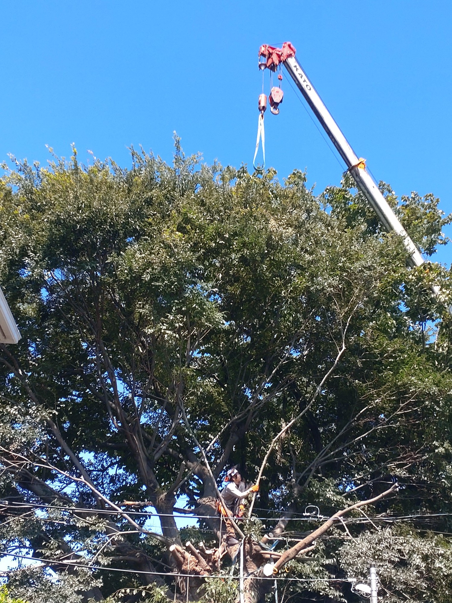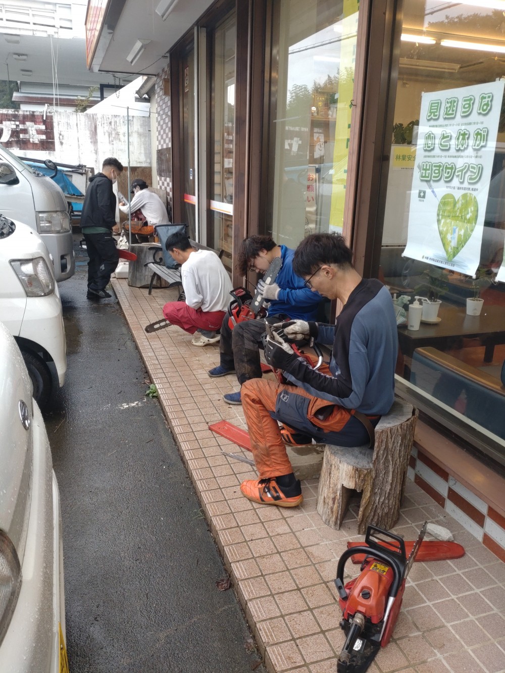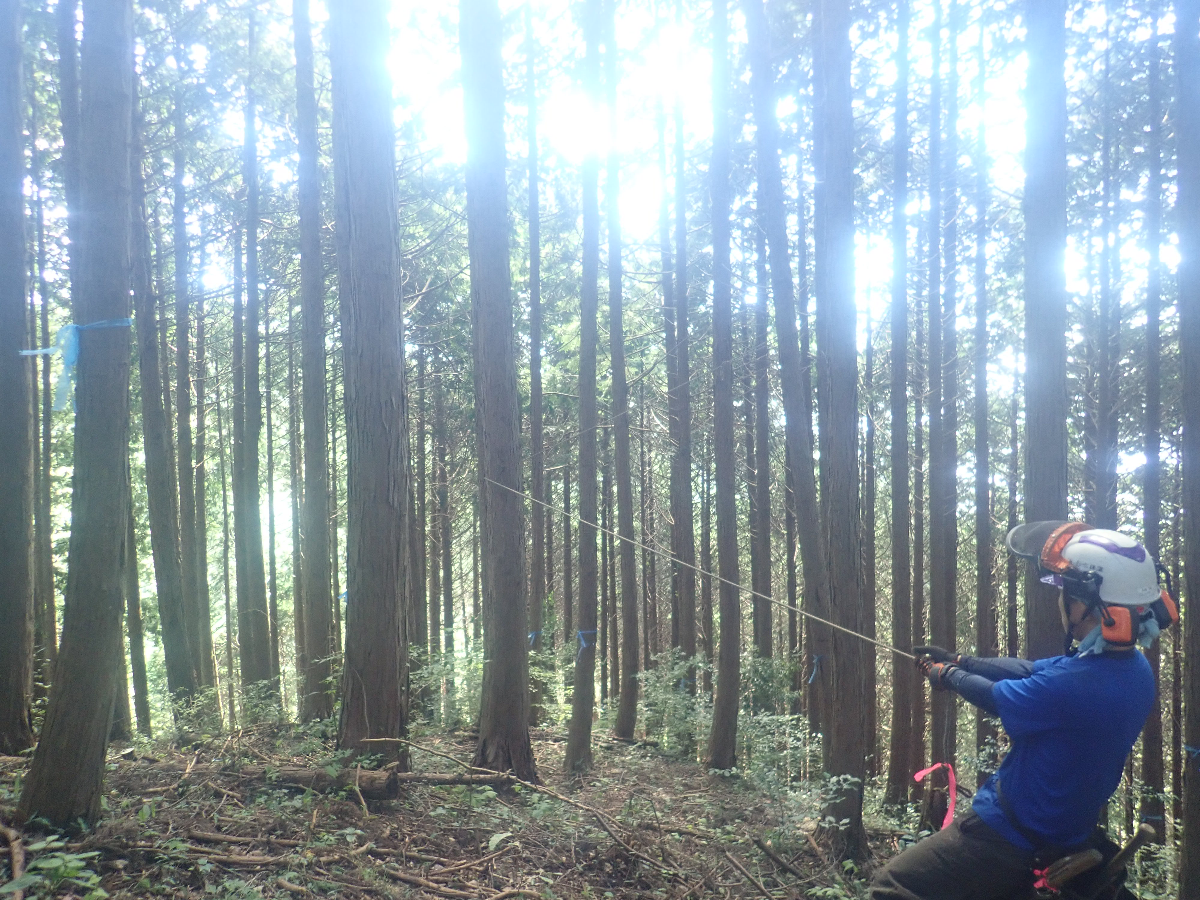 ここからフルスロットル! 秋の青空のもと緊急特殊伐採剪定業務を先日行いました。 早朝天気が悪く目立て(チェーンソーの刃がしっかり切れるように研ぐこと)をして準備! 山の中では安全対策で伐倒!逆光で眩しくても負けません! 年度末までフルスロットルで山仕事に尽力して参ります! NEWヘルメット!!青がカッコイイ!! 弊社社長はSOPHIAの「青い季節」という歌が大好きだそうです。
