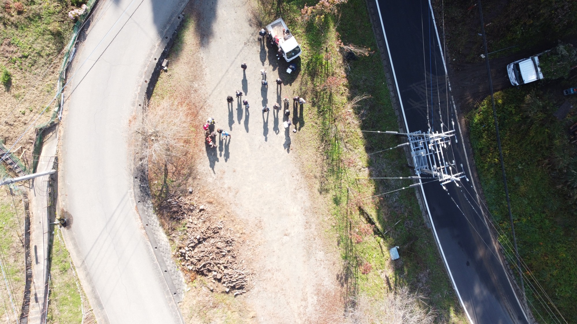 紅葉と・・・特伐と・・・見学と・・・ 空は青く・・今日も紅葉が綺麗でした。 地元の神社での特殊伐採を行っています。 一番ドキドキした木の処理が無事に終わりホットしております。 神様に心より感謝申し上げます。ありがとうございます。 両向造林組合の皆様が弊社へ見学に来て下さいました。 御足労頂き誠に感謝申し上げます。 写真は弊社ドローンを皆様に紹介させて頂いた時に上空から撮影したものです。 今後とも頑張ってい参りますのでよろしくお願い致します。