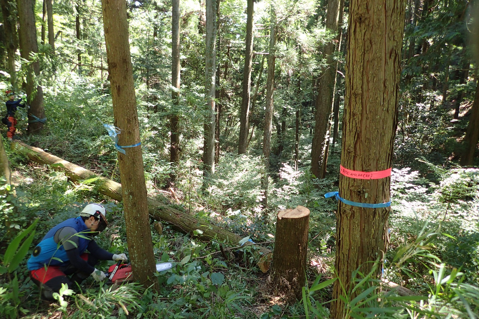 どうにもならない暑さの中、一生懸命間伐作業をしております。