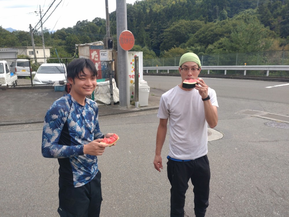 暑い日の終わりに・・・冷たいスイカ。 体がヒートする暑さの中、業務後のスイカが体に染みて美味しかったです! しかし、まだまだ暑い日が続きます。 材出し、調査、間伐・・・修行の様な毎日を皆頑張っております! 近々HPリニューアル予定です。 宜しくお願い致します!