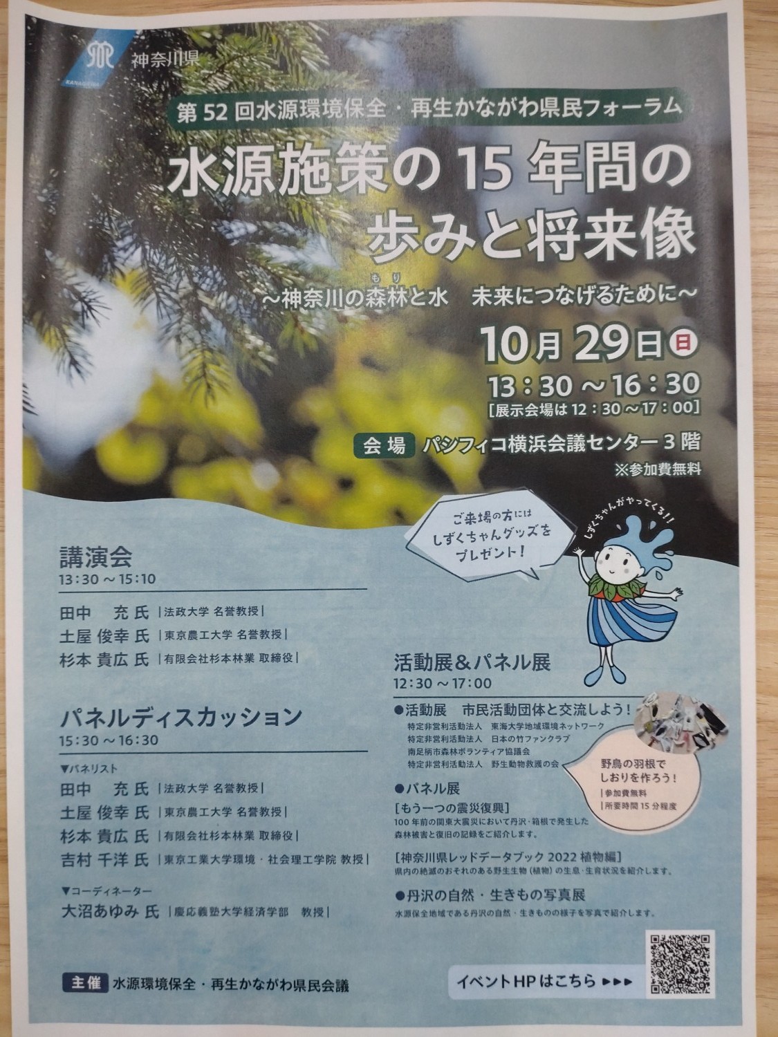 山の仕事も色々!&お知らせ! 先日、来年行われるイベント会場となる森を調査してきました。 素晴らしいイベントになるよう従業員一丸となって取り組んでまいります! 「雨の日は休みですか?」と時々質問されることがあります。 現場作業は行いませんが、雨の日は資料作りや書き仕事、安全教育等を行っております。 『第52回水源環境保全・再生かながわ県民フォーラム』で弊社代表の杉本がお話しさせて頂く事となりました。 ご都合の合う方は是非お越し下さい。 又、HP早く更新します・・・遅れていて申し訳ございません。