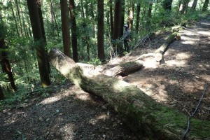 お盆前の台風で林道にクヌギとマツが倒れていて処理してきました。